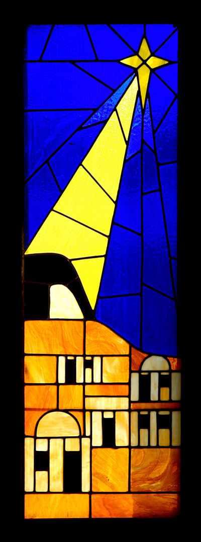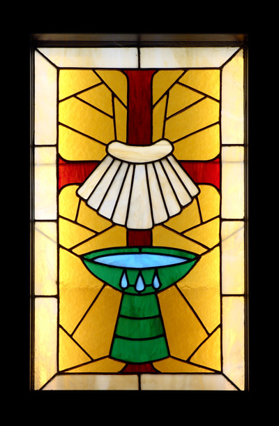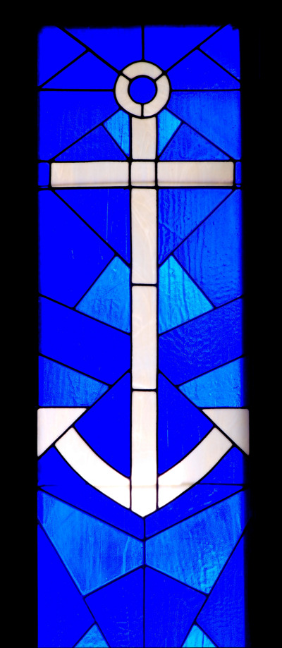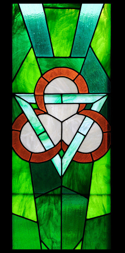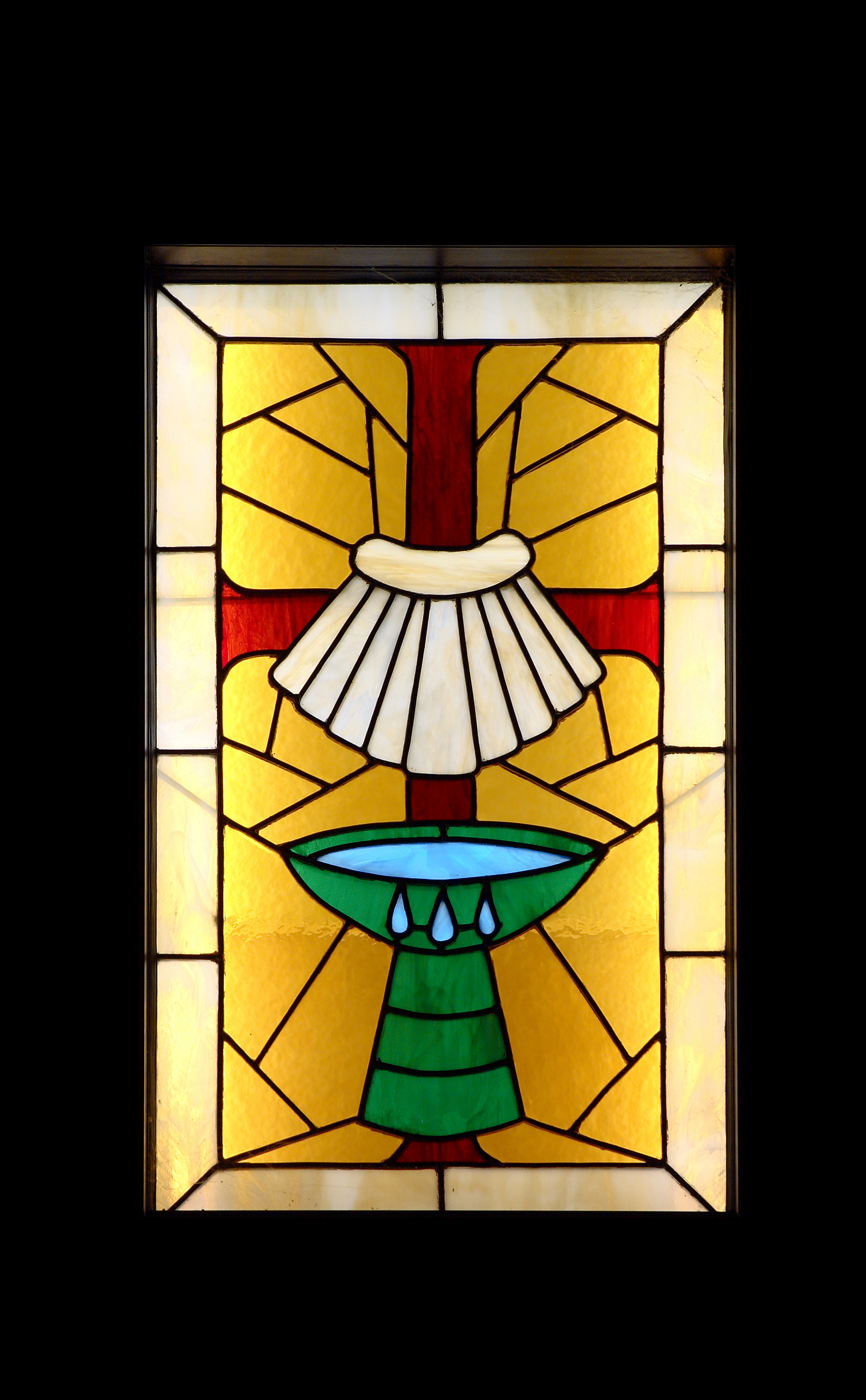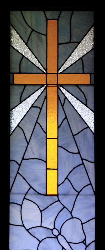 The stained glass windows of New Hope Lutheran Church, located in Missouri City, Texas.