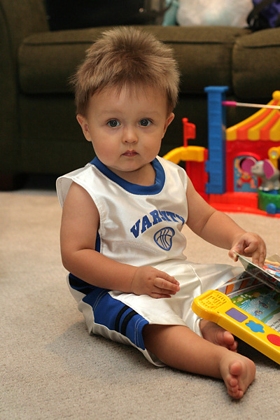 Announcer: "... From the University of Sugar Land, playing small forward, at two-foot four inches, twenty-one pounds, number zero, A.J. Hahn!..."