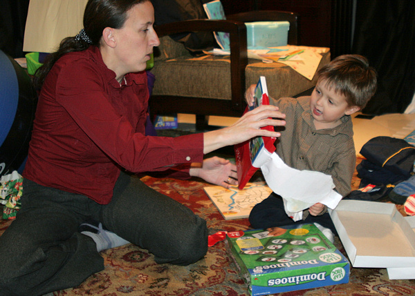Even though it is Christmas, Alex asks, "Who got the Halloween domino?"December 24, 2008