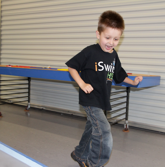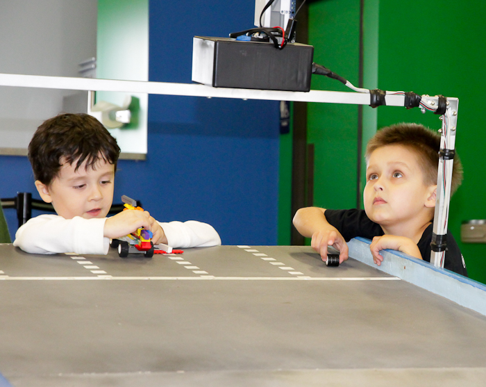 Alex and I each made a Sumo robot for the Techno Chaos Robot Rumble on Saturday night. We put our robots up against two other bots and did fairly well considering it was our first time. Alex and I had lots of fun. Alex even modified his robot at Techno Chaos with a touch sensor on the back that would back up if pressed (look for this feature on the video).