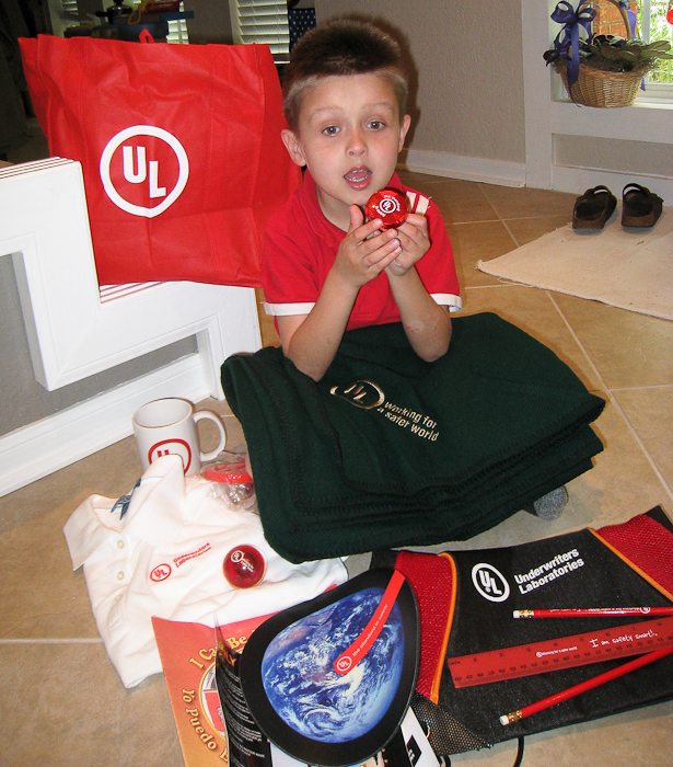 Alex wrote to Underwriters Laboratories and they sent him a package of UL goodies.