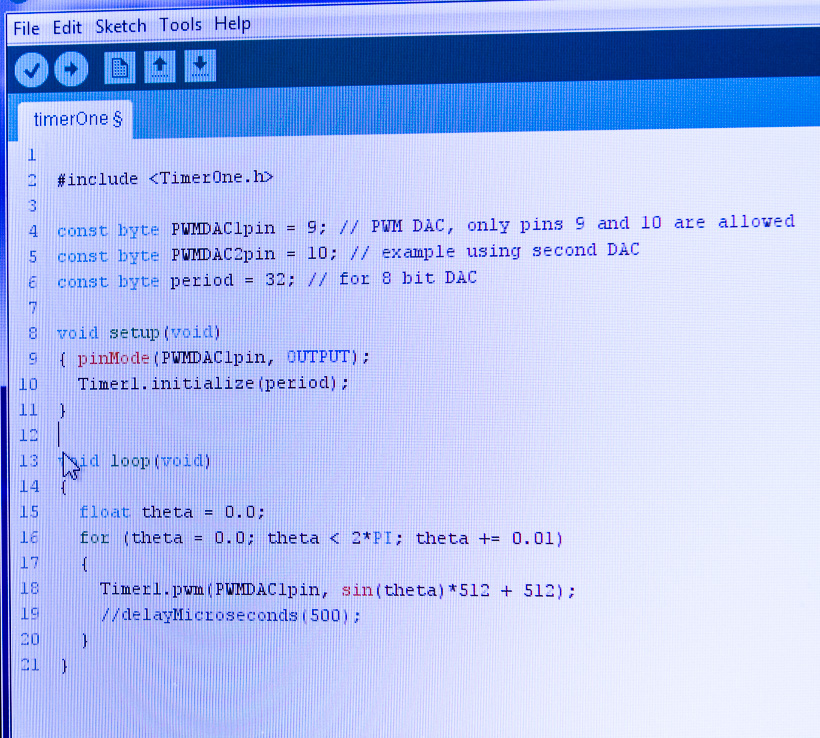 Code for the pulse-width-modulated output that the DAC will turn into a sine wave.
