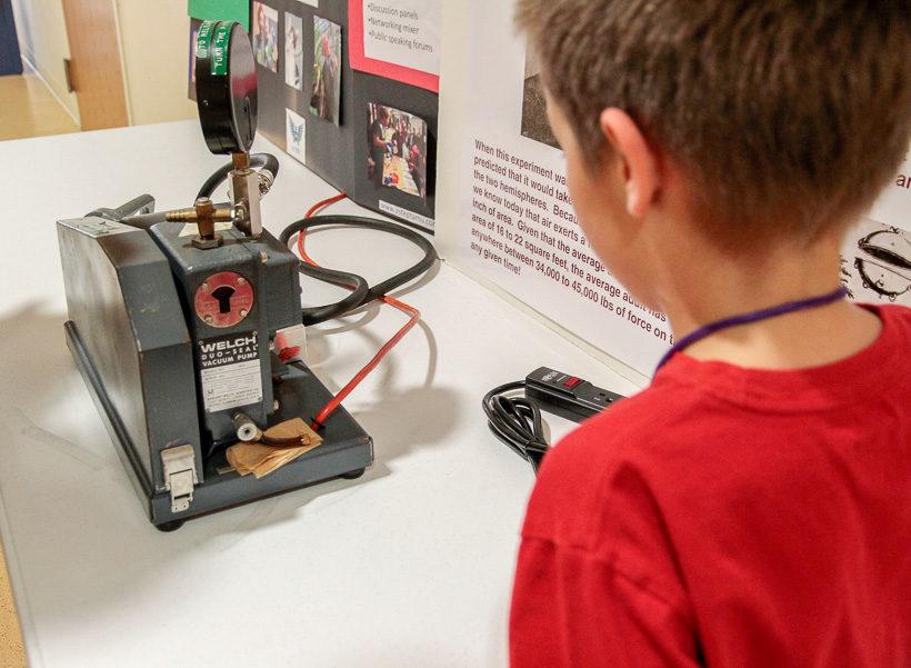 Alex practicing his soldering skills at the 2015 Houston Mini Maker Faire at the George R. Brown Convention Center.