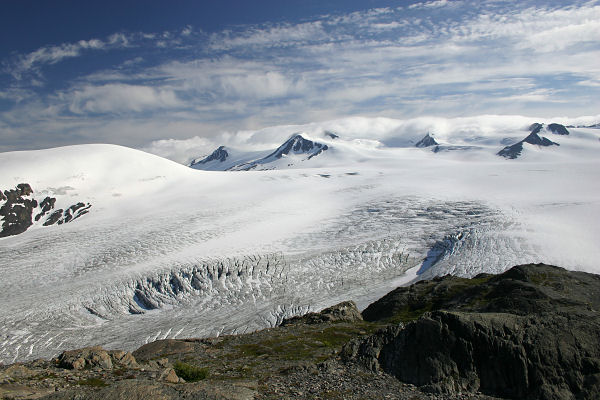 The Exit Glacier's source is the Harding Ice Field, one of the largest ice fields in North America