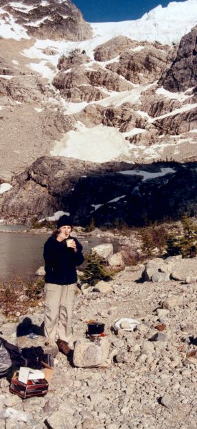 Heather eating dinner at Upper Joffre Lake