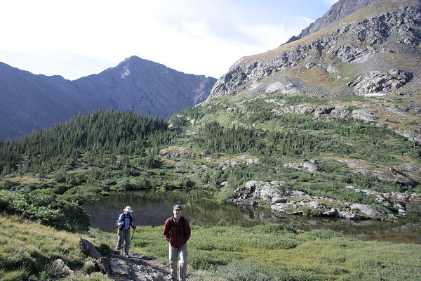 Amanda and Dave above the lower South Colony Lake, on our way to Humboldt Peak.