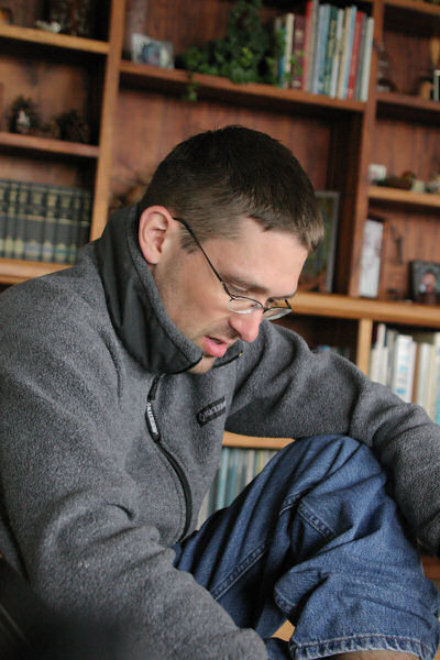 Todd putting aloe on his sunburned feet.