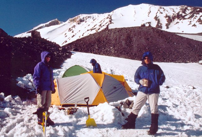Heather and Ron (our guide from Dairyland Expeditions) at the second camp at 7500 feet. "The Pinnacle" is visible top left. The next morning we had to go down because one of the clients was sick and couldn't continue.