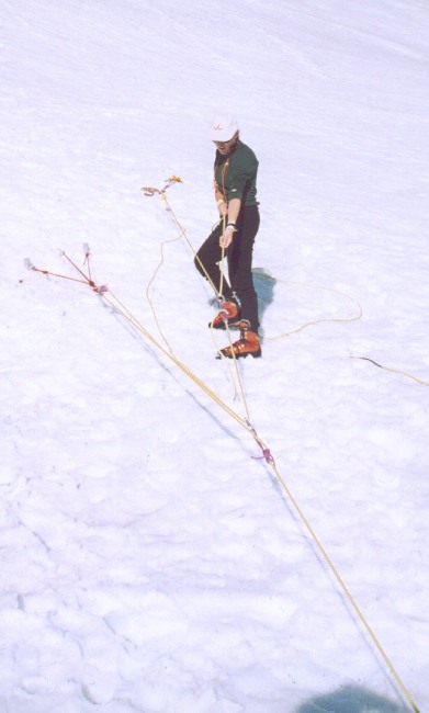 Learning crevasse rescue at the first camp. A 5:1 (C/Z) system is pictured.