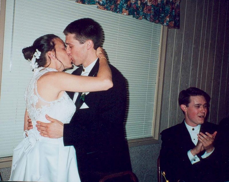 Todd and Heather, at the Head Table, respond to a song sung by the guests