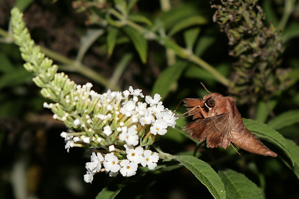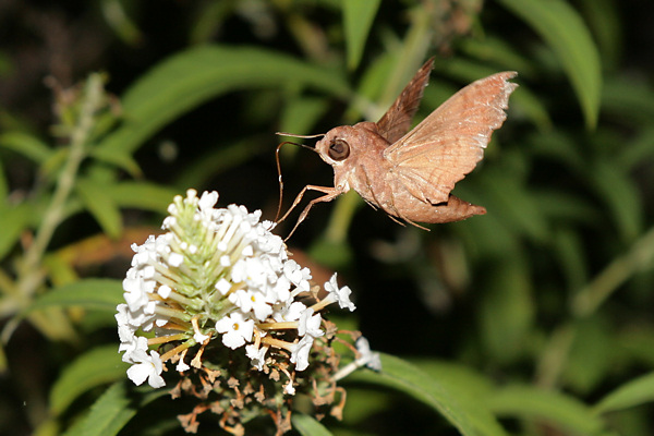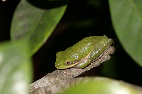 A green tree frog (probably Hyla cinerea) and many nectar-eating hawkmoths were visiting our backyard.