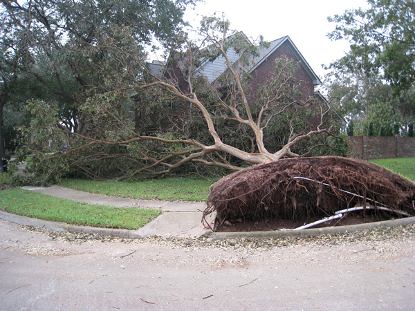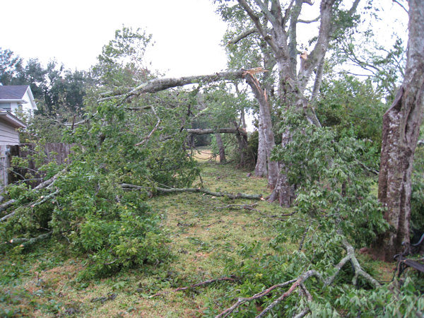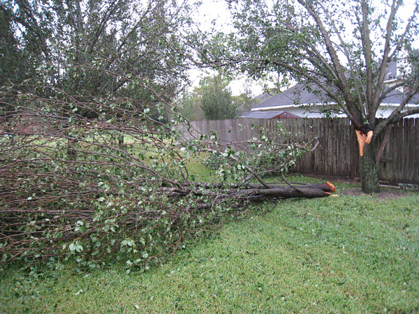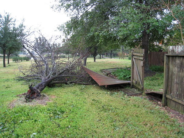 Part of our fence was blown over, along with a Bradford Pear tree that was actually dead before the hurricane. So it wasn't a surprise that it too was blown over.