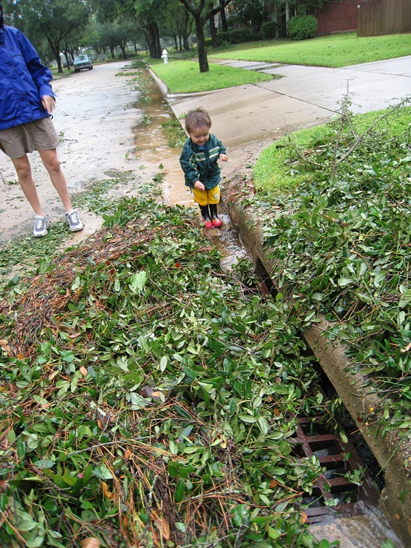 At least Alex was having fun... Some of us cleared the street near the storm drain later that day.
