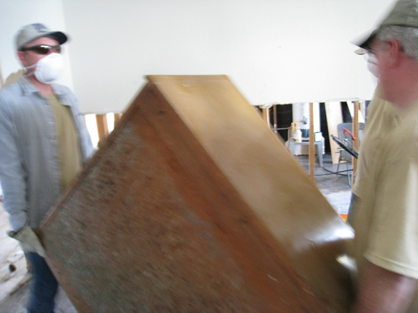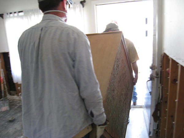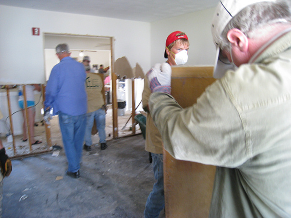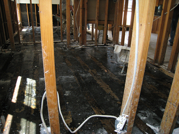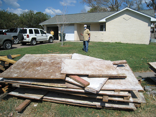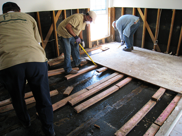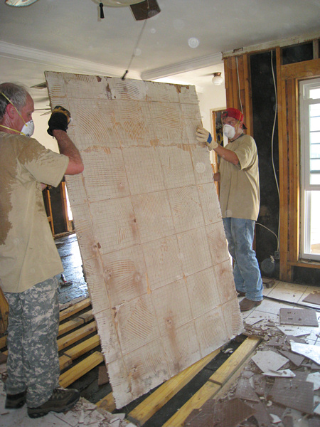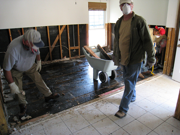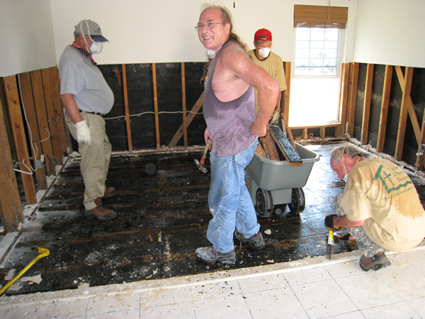 We eventually moved on to a house across the street. The people were starting to rip up their subfloor. It had to come up--there was still water underneath and the plywood and 2x4s were soaked. We got ten or so people on the job and ripped up almost their entire floor in about two hours.