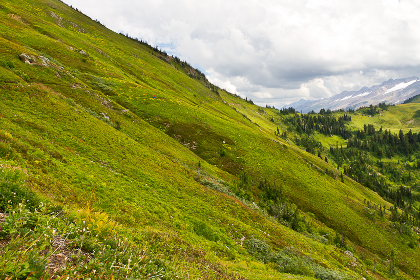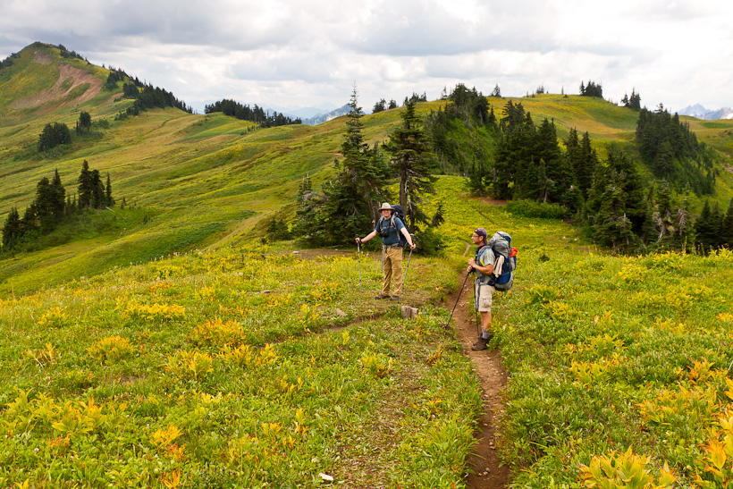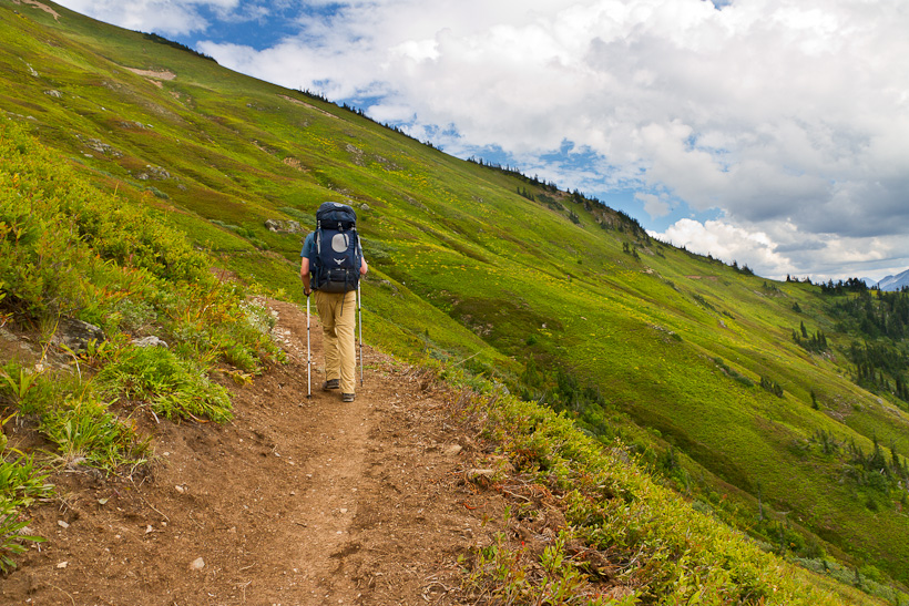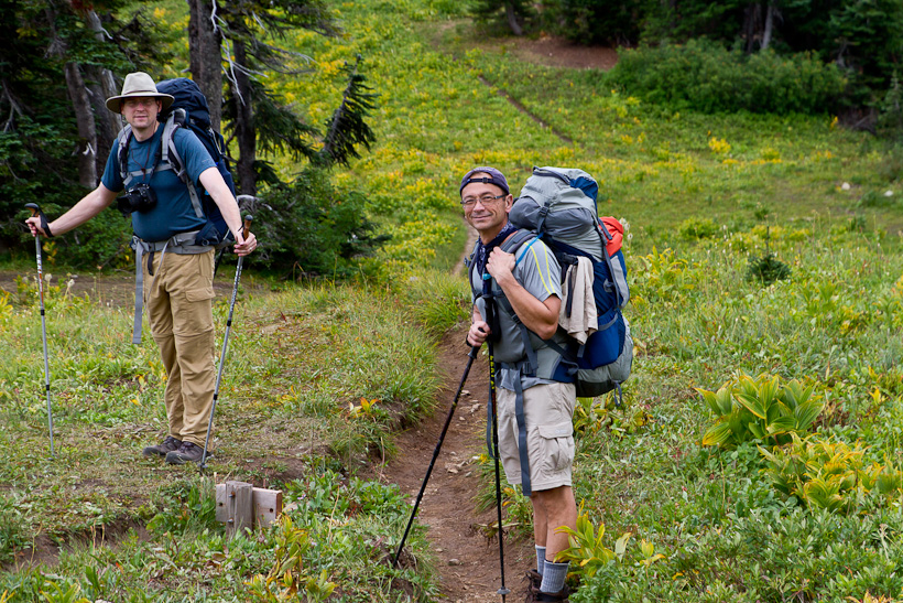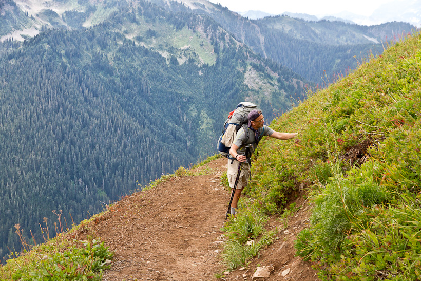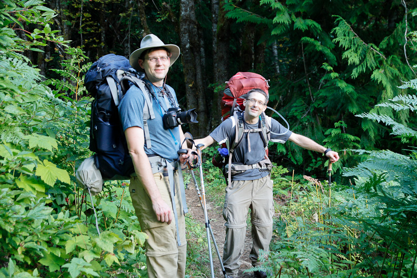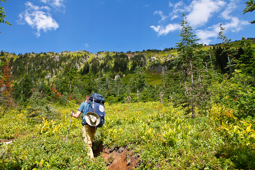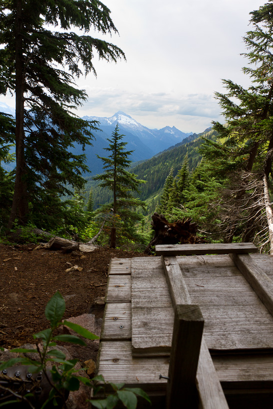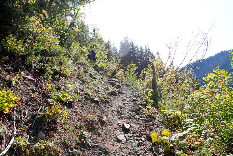 Started up the North Fork Sauk trail late in the day -- about 6pm. We had a late morning flight arrival in Seattle, followed by obtaining groceries, fuel, misc items and stopping at the Forest Service Station in Darrington.