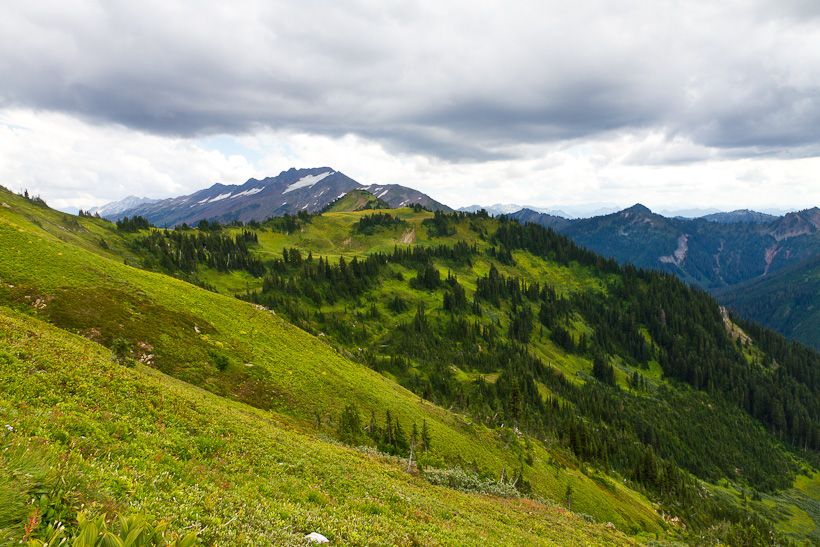 Sunset at White Pass looking down the North Fork of the Sauk River Sloan Peak