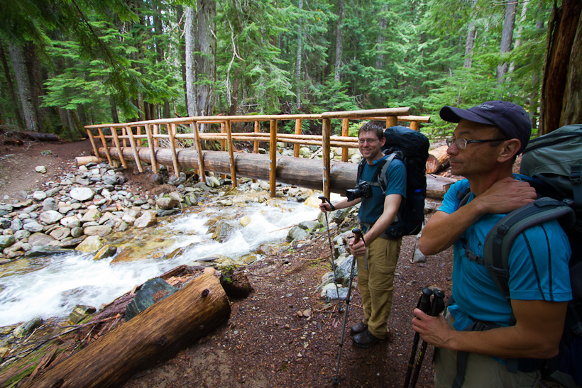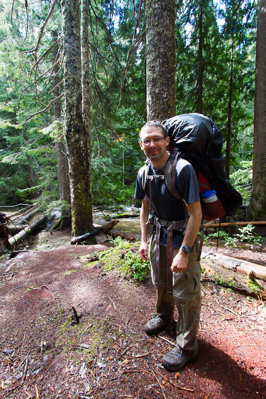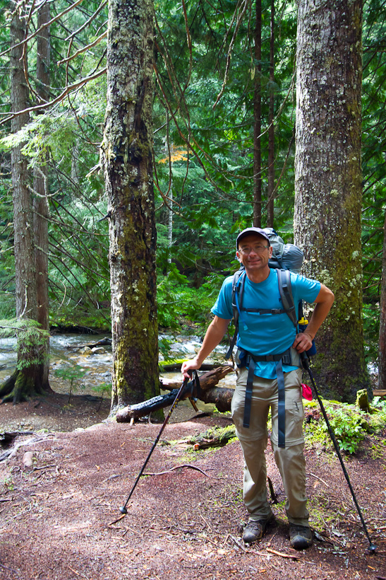 Rain in the morning caused a late start and no photos on the way down from White Pass to the Mackinaw Shelter. It rained quite severely during the night and as a result, we had mud splatter 6 inches up the walls of the tents.