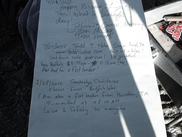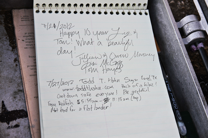 We started up the trailhead at 5:55am and signed the trail register, indicating our destination, method of travel (foot), and number of days (1). A few other people from the previous day had indicated they were going to Thompson Peak.