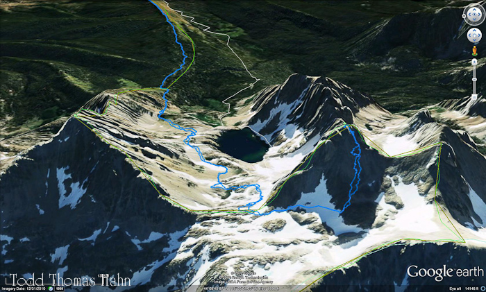 As far as difficulty or amount of effort, I feel this climb is about as difficult as Longs Peak, maybe a bit less. It is only 13 miles compared to Longs' 16 and only 4200 feet in elevation gain compared to Longs' 5000'. However, there are a couple of complicating factors that may dissuade someone who has done Long's Peak. First, this hike is mostly off-trail for the last mile or two to the summit and there are no painted rocks or cairns. There is a minor amount of relatively simple route-finding. Second, a solo hiker on this route will likely be alone after starting up the climber's trail into the cirque. Third, the talus is steep and loose, especially on the pyramid leading up to the peak.
