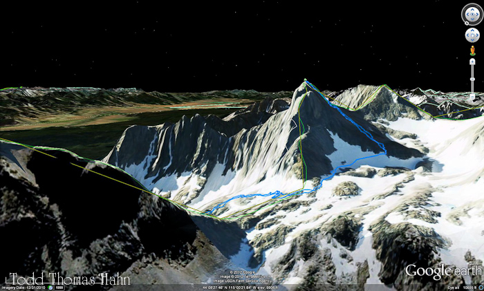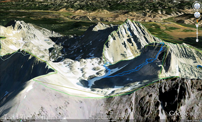 My route up the pyramid of Thompson was on the east slopes and it maybe should have been more towards the southern slope/ridge. The talus was very steep and loose on the east side.