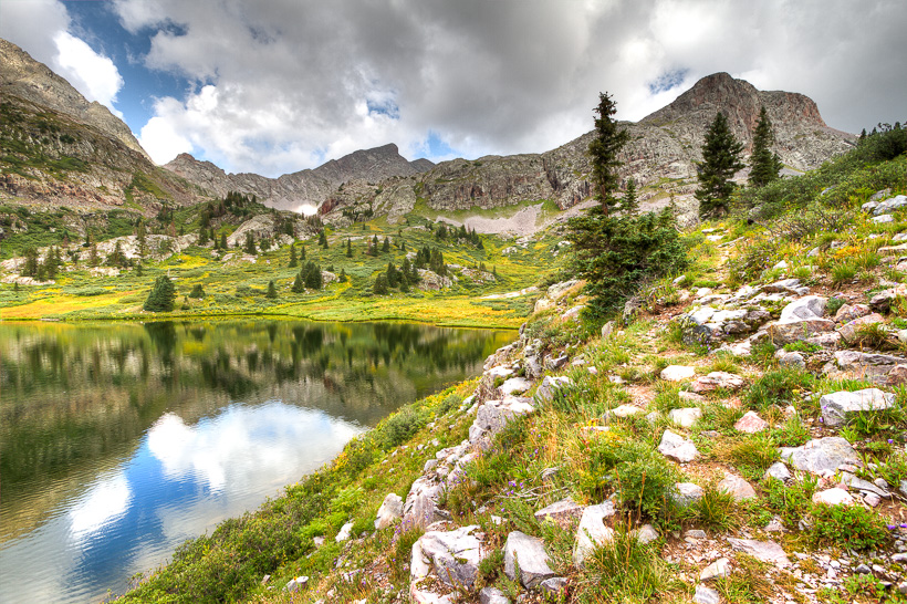 The trail past Moon Lake makes its way above Half Moon Lake.
